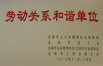 2010年以來,中電北海產(chǎn)業(yè)園深入開展“勞動關(guān)系和諧單位”活動,取得了良好收效,近日,中國電子北海產(chǎn)業(yè)園發(fā)展有限公司獲得北海市人力資源和社會保障局、北海市總工會、北海市企業(yè)管理協(xié)會/北海市企業(yè)家協(xié)會、北海市工商業(yè)聯(lián)合會四家單位聯(lián)合授予的“勞動關(guān)系和諧單位”稱號。