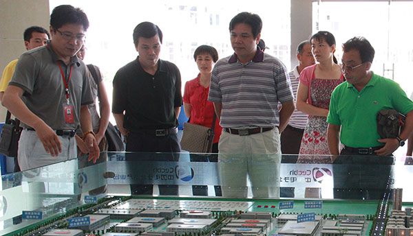 劉慶強(qiáng)局長一行在展廳聽取了園區(qū)發(fā)展情況的介紹,并參觀了長城能源及國鈺電子生產(chǎn)車間,詳細(xì)了解了企業(yè)生產(chǎn)工藝和市場開拓等情況。在北部灣電子信息科技企業(yè)孵化器,劉局長一行饒有興致地參觀了孵化器企業(yè)展品,并與企業(yè)的員工親切交談,了解企業(yè)在孵化器的發(fā)展情況。劉局長表示中電北海產(chǎn)業(yè)園、北海市科技局共同打造孵化器,所取得的先進(jìn)經(jīng)驗值得學(xué)習(xí)研究,兩市的科技部門要加強(qiáng)溝通,互相借鑒提高。