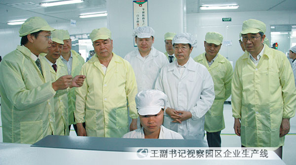 二0一一年四月二十一日,中共中央政治局委員、中央政法委副書記王樂泉在廣西壯族自治區(qū)黨委書記郭聲琨、自治區(qū)政府主席馬飆等自治區(qū)領(lǐng)導(dǎo)的陪同下,蒞臨中國電子北海產(chǎn)業(yè)園視察指導(dǎo),集團(tuán)公司聶玉春副總經(jīng)理受熊群力董事長(zhǎng)的委托,赴北海迎接王樂泉副書記一行。