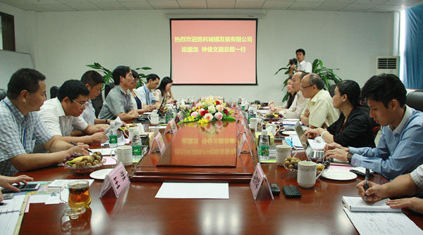 2014年8月12日,勝科城鎮(zhèn)發(fā)展公司副總裁梁國龍、鐘俊文在廣西自治區(qū)商務廳副廳長韋朝暉、北海市副市長石昆的陪同下赴中國電子北海產(chǎn)業(yè)園,就以北部灣智慧生態(tài)電子城項目為基礎,雙方進行戰(zhàn)略合作有關(guān)事宜進行實地考察??疾炱陂g,自治區(qū)黨委常委、北海市委王小東書記進行了親切會見,北海市政府林山青常務副市長帶隊與考察團進行了座談。