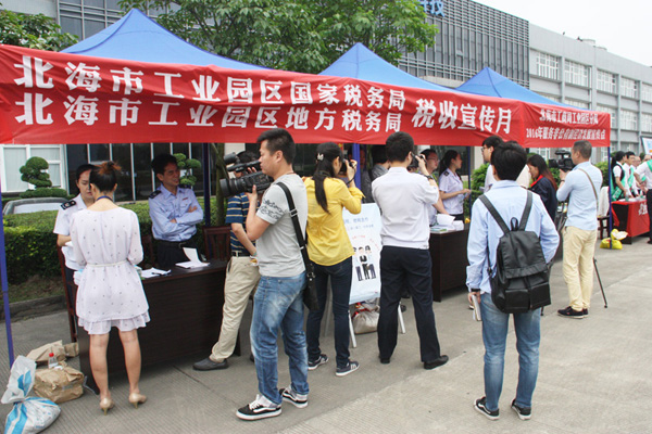 2016年4月19日,北海市工業(yè)園區(qū)國(guó)稅局、地稅局、工商局工業(yè)園區(qū)分局、農(nóng)業(yè)銀行北海分行走進(jìn)北海工業(yè)園區(qū),在中國(guó)電子北海產(chǎn)業(yè)園現(xiàn)場(chǎng)為企業(yè)宣講營(yíng)改增、解讀稅收優(yōu)惠政策、服務(wù)非公有制經(jīng)濟(jì)發(fā)展及金融服務(wù)。