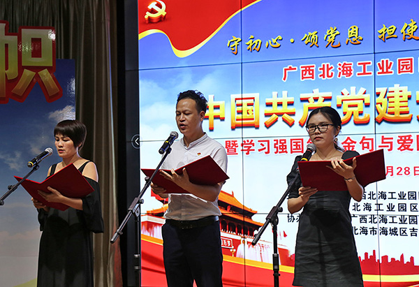 2020年6月28日下午,廣西北海工業(yè)園區(qū)迎慶中國共產黨建黨99周年暨學習強國每日金句與愛國詩詞朗誦讀比賽在工業(yè)園區(qū)舉行。中國電子北海產業(yè)園聯(lián)合黨支部組織支部黨員及代表參賽,經過精彩角逐,榮獲比賽二等獎。